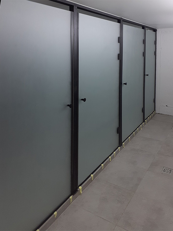 Матові розпашні двері в душ найчастіше встановлюють у сумісних санвузлах.