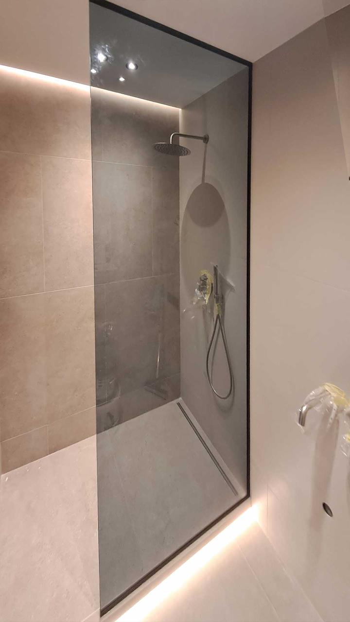 Душова перегородка — це стильний і функціональний елемент, що дозволяє відокремити зону душу й захистити решту простору від розбризкування води, забезпечуючи візуальне розмежування та комфорт під час користування душем. Ми пропонуємо перегородки, виготовлені виключно з загартованого скла товщиною від 8 мм. Це безпечний і міцний матеріал, стійкий до ударів і перепадів температур. У разі пошкодження скло розсипається на дрібні, не гострі уламки, знижуючи ризик травм. Товщина від 8 мм забезпечує конструкції високу жорсткість, стійкість і довговічність.